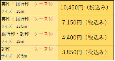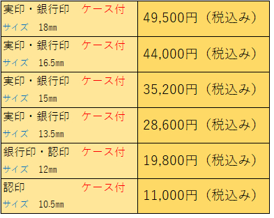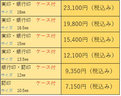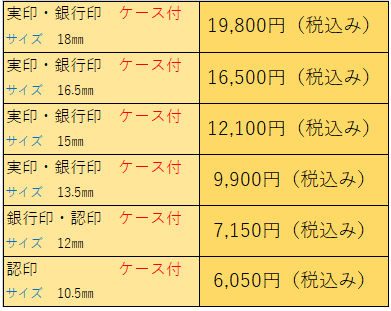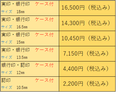 - 印鑑の種類とサイズ (例:①実印・銀行印、18mm ②認印、10.5㎜)