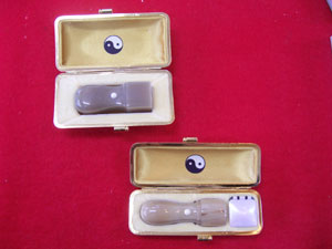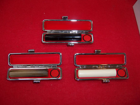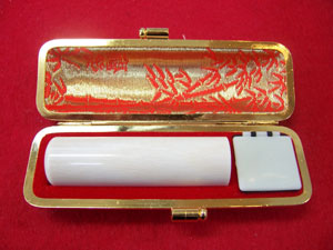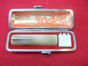 象牙:最高級 象の上あごの門歯にあたる牙を材料にした最高級の印材です。高級象牙にくらべキメが細かく、粘り、朱肉のつきも抜群で耐久性にも優れて最も印鑑の材料として適しています。 象牙:高級 最高級象牙に比べややキメの細かさでは劣りますが、印材としては抜群の材料です。また、高級象牙に比べてやや品質としては劣る特選象牙もあります。 オランダ水牛 オランダ水牛は、象牙についで印材としては上質な物として広く使われています。朱肉のつき具合、印影の美しさは象牙にも負けずと劣りません。 黒水牛 東南アジア、インド、アフリカ産の水牛の角を漆黒に染め上げたものです。素材に粘りがあり欠けにくく印材としてポピュラーです。乾燥に弱い弱点があります。 本柘 粘りがあり植物系の印材では最も繊維が緻密です。捺印性に優れますが他の印材に比べるとやや耐久性に劣ります。 マンモスの牙 印材として大変貴重で珍しいものでが、捺印性、耐久性などは他の印材と比べるとやや劣ります。 実印(個人・法人) 実印は印鑑の中でも最も重要なものです。役所に届ける書類、登記や法律的な権利などが関係する場合に用います。自分にあった材質、印相の印鑑を作りましょう。 銀行印(個人・法人) 人間社会は何かとお金が深く関係します。自分の財産を守ってくれる印鑑ですので、銀行に届ける印鑑は他の印鑑とは区別して使いましょう。 認印(個人・法人) 日常最もよく使われる印鑑で、自分と他人を結びつけるものです。認印だからと言っても安易に扱うことは慎みましょう。 その他印鑑 割り印 長い文章になる契約書や議事録など、間に不正に違う文章が差し込まれないようにするために2枚の紙にわたって印鑑を押します。また、印紙の納税の証明としても割り印を押します。 落款印(らっかん) 書道、絵画などに自身の作品であることの証として押す印鑑です。芸術性を追求するものなので印相にとらわれる必要はありません。 業務用ゴム印 領収済み、請求書、会社横版印など、日常業務で使用する印鑑です。 ゴム印3時間仕上げの詳細は⇒こちら 実印:本柘 実印:本柘 実印:オランダ水牛 実印:オランダ水牛 認印:黒水牛(上)オランダ水牛(左下)象牙(右下) カラフルでお洒落な印鑑はいかがですか?日常的にお使いになる認印や、進学、就職などのちょっとしたお祝いに添えるなど、いろんな用途に使用できます。 おしゃれ印価格は ⇒こちら